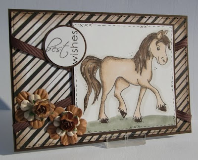 Today I have used the sweet fairy from the new LeLo Design collection. The DP is by My Mind's Eye and the fairy was colored with distress inks. Copic markers were used to make the background. I hope you have a great day!!!