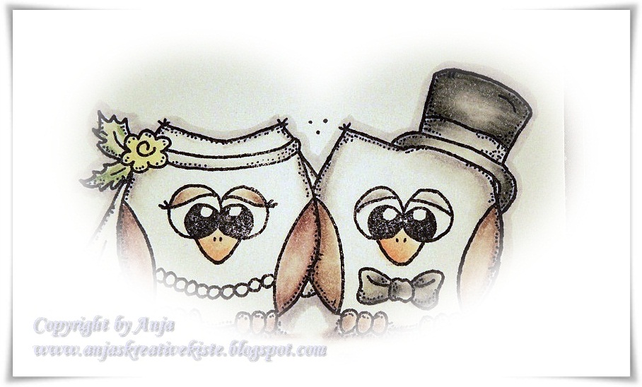 Als DT-Challenge-Beitrag habe ich ein Hochzeitskärtchen gewerkelt und dafür gleich die beiden süßen Eulen aus der brandneuen LeLo-Kollektion verwendet.